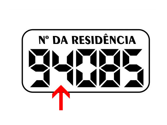 Identificação do número da residência confeccionado em adesivo de vinil plotado;